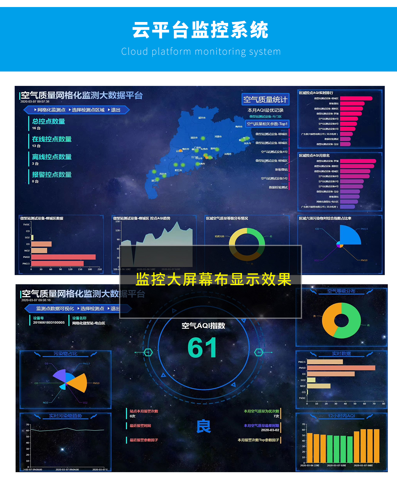 應用 : 企業化工園區,城市環境監測,市政環境監測,移動環境監測,交通污染環境監測居民區/學校/醫院空氣質量環境監測,公園/森林環境監測。